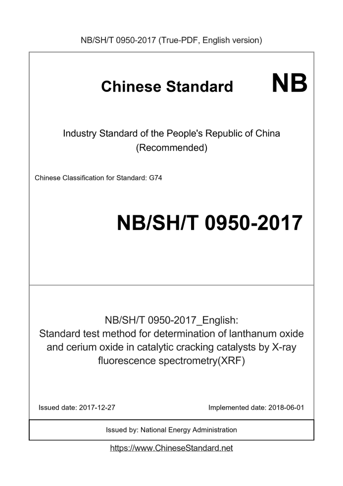 Delivery: <= 3 days. True-PDF full-copy in English will be manually translated and delivered via email. NBSHT0950-2017: Standard test method for determination of lanthanum oxide and cerium oxide in catalytic cracking catalysts by X-ray fluorescence spectrometry(XRF) Status: Valid