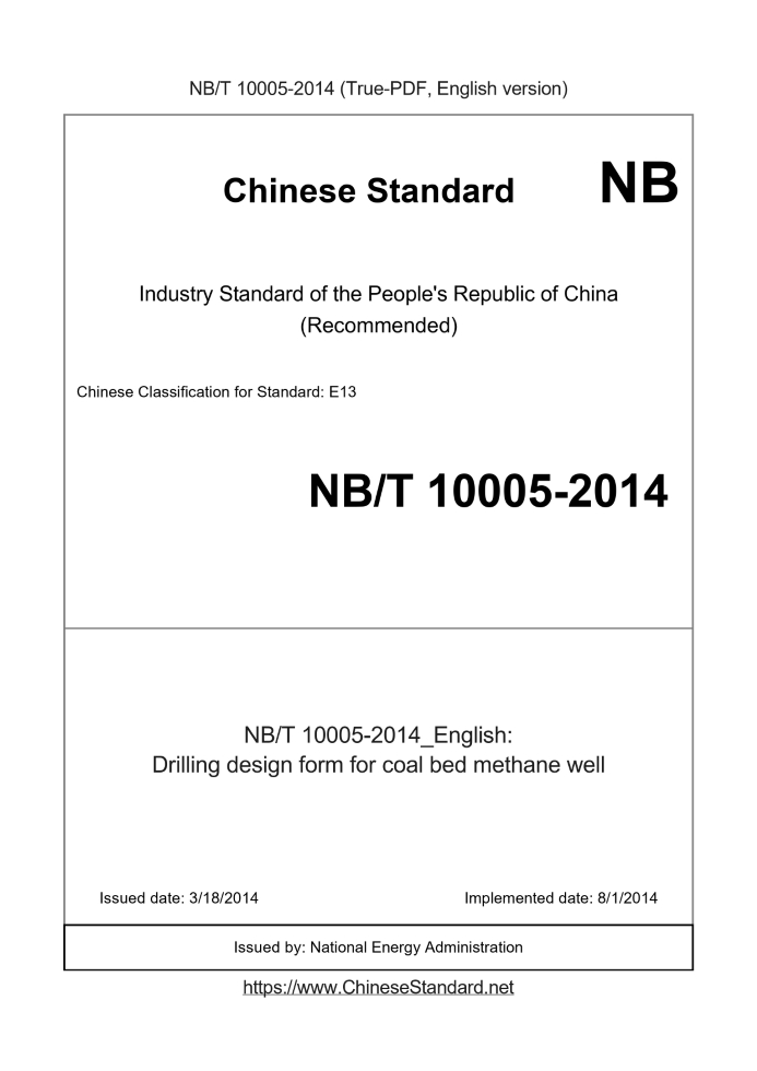 Delivery: <= 4 days. True-PDF full-copy in English will be manually translated and delivered via email. NB/T 10005-2014: Drilling design form for coal bed methane well Status: Valid