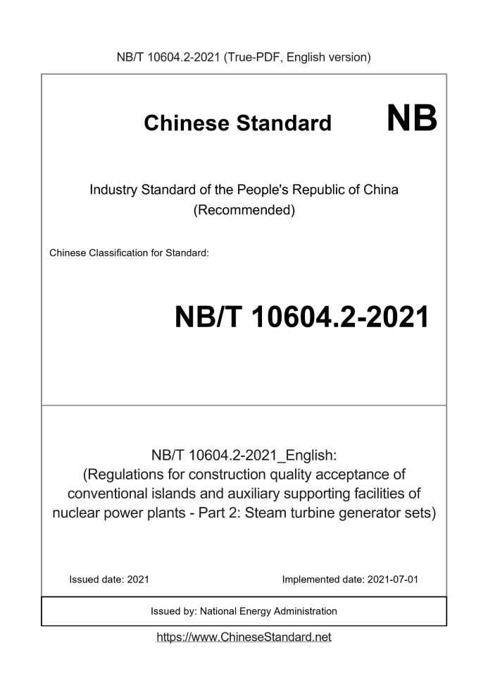 Basic dataStandard ID: NB/T 10604.2-2021 (NB/T10604.2-2021)Description (Translated English): (Regulations for construction quality acceptance of conventional islands and auxiliary supporting facilities of nuclear power plants - Part 2: Steam turbine generator sets) Sector / Industry: Energy Industry Standard (Recommended) Date of Issue: 2021 Date of Implementation: 2021-07-01 Issuing agency(ies): National Energy Administration Tips & Frequently Asked Questions:Question 1: How long will the true-PDF of NB/T 10604.2-2021_English be delivered?Answer: Upon your order, we will start to translate NB/T 10604.2-2021_English as soon as possible, and keep you informed of the progress. The lead time is typically 1 ~ 3 working days. The lengthier the document the longer the lead time.Question 2: Can I share the purchased PDF of NB/T 10604.2-2021_English with my colleagues?Answer: Yes. The purchased PDF of NB/T 10604.2-2021_English will be deemed to be sold to your employer/organization who actually pays for it, including your colleagues and your employer's intranet.Question 3: Does the price include tax/VAT?Answer: Yes. Our tax invoice, downloaded/delivered in 9 seconds, includes all tax/VAT and complies with 100+ countries' tax regulations (tax exempted in 100+ countries) -- See Avoidance of Double Taxation Agreements (DTAs): List of DTAs signed between Singapore and 100+ countriesQuestion 4: Do you accept my currency other than USD?Answer: Yes. If you need your currency to be printed on the invoice, please write an email to Sales@ChineseStandard.net. In 2 working-hours, we will create a special link for you to pay in any currencies. Otherwise, follow the normal steps: Add to Cart -- Checkout -- Select your currency to pay. |