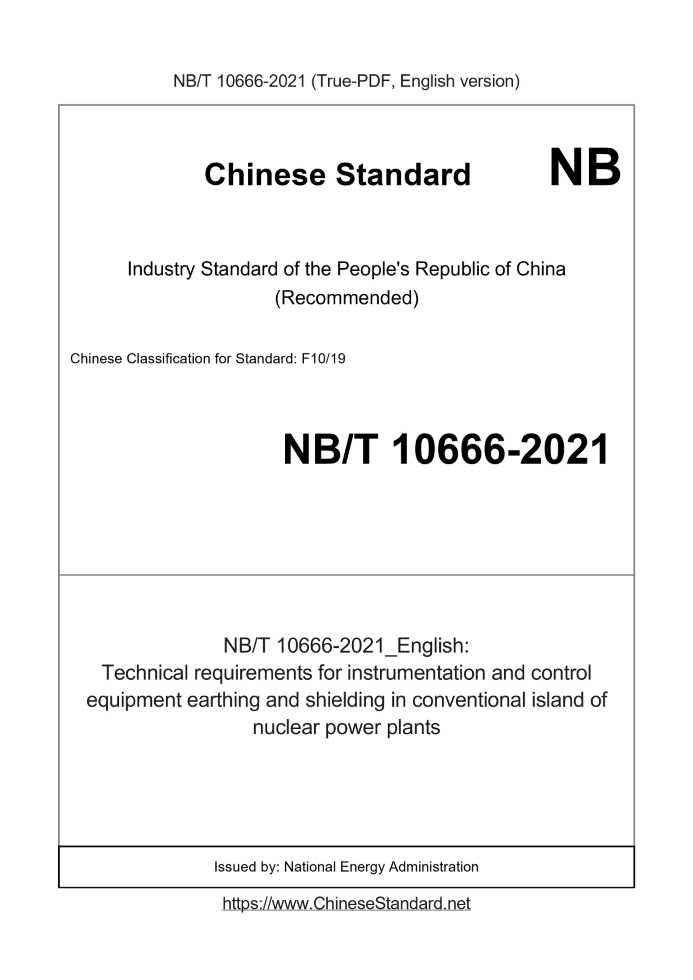 Delivery: <= 3 days. True-PDF full-copy in English will be manually translated and delivered via email. NB/T 10666-2021: Technical requirements for instrumentation and control equipment earthing and shielding in conventional island of nuclear power plants Status: Valid