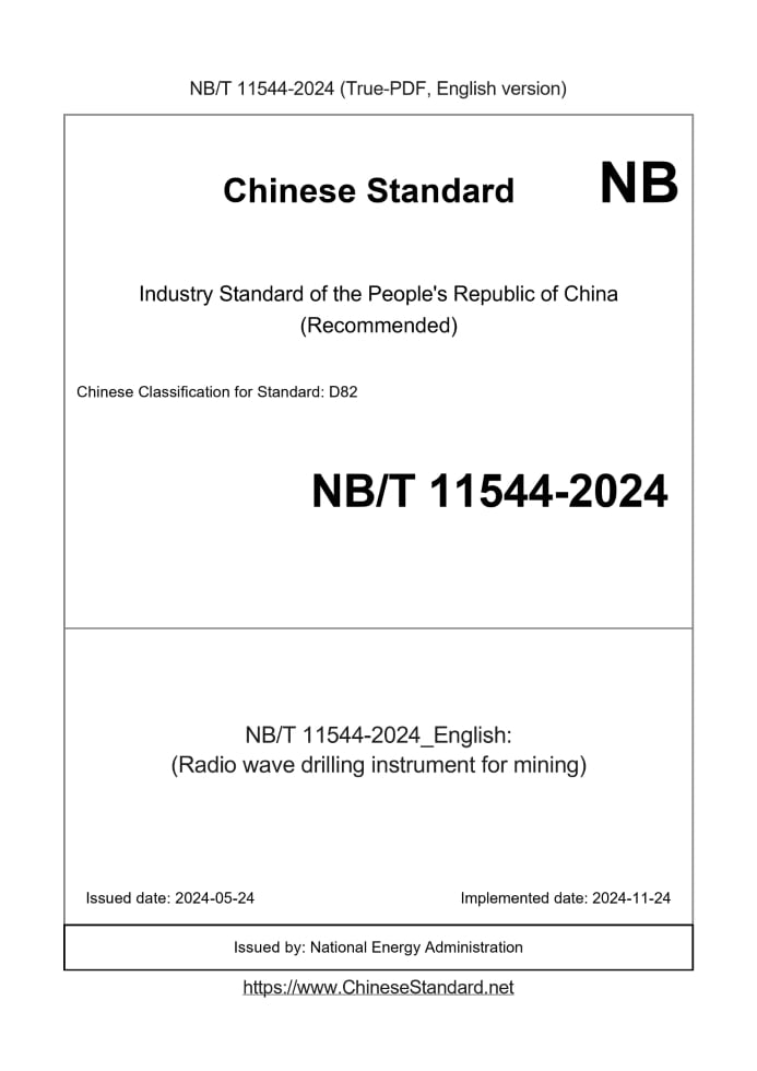 Delivery: <= 4 days. True-PDF full-copy in English will be manually translated and delivered via email. NB/T 11544-2024: (Radio wave drilling instrument for mining) Status: Valid