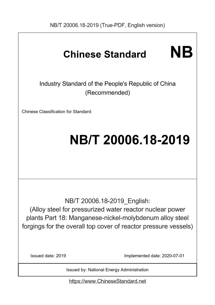 Basic dataStandard ID: NB/T 20006.18-2019 (NB/T20006.18-2019)Description (Translated English): (Alloy steel for pressurized water reactor nuclear power plants Part 18: Manganese-nickel-molybdenum alloy steel forgings for the overall top cover of reactor pressure vessels) Sector / Industry: Energy Industry Standard (Recommended) Date of Issue: 2019 Date of Implementation: 2020-07-01 Issuing agency(ies): National Energy Administration Tips & Frequently Asked Questions:Question 1: How long will the true-PDF of NB/T 20006.18-2019_English be delivered?Answer: Upon your order, we will start to translate NB/T 20006.18-2019_English as soon as possible, and keep you informed of the progress. The lead time is typically 1 ~ 3 working days. The lengthier the document the longer the lead time.Question 2: Can I share the purchased PDF of NB/T 20006.18-2019_English with my colleagues?Answer: Yes. The purchased PDF of NB/T 20006.18-2019_English will be deemed to be sold to your employer/organization who actually pays for it, including your colleagues and your employer's intranet.Question 3: Does the price include tax/VAT?Answer: Yes. Our tax invoice, downloaded/delivered in 9 seconds, includes all tax/VAT and complies with 100+ countries' tax regulations (tax exempted in 100+ countries) -- See Avoidance of Double Taxation Agreements (DTAs): List of DTAs signed between Singapore and 100+ countriesQuestion 4: Do you accept my currency other than USD?Answer: Yes. If you need your currency to be printed on the invoice, please write an email to Sales@ChineseStandard.net. In 2 working-hours, we will create a special link for you to pay in any currencies. Otherwise, follow the normal steps: Add to Cart -- Checkout -- Select your currency to pay. |