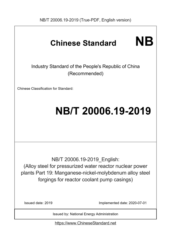 Basic dataStandard ID: NB/T 20006.19-2019 (NB/T20006.19-2019)Description (Translated English): (Alloy steel for pressurized water reactor nuclear power plants Part 19: Manganese-nickel-molybdenum alloy steel forgings for reactor coolant pump casings) Sector / Industry: Energy Industry Standard (Recommended) Date of Issue: 2019 Date of Implementation: 2020-07-01 Issuing agency(ies): National Energy Administration Tips & Frequently Asked Questions:Question 1: How long will the true-PDF of NB/T 20006.19-2019_English be delivered?Answer: Upon your order, we will start to translate NB/T 20006.19-2019_English as soon as possible, and keep you informed of the progress. The lead time is typically 1 ~ 3 working days. The lengthier the document the longer the lead time.Question 2: Can I share the purchased PDF of NB/T 20006.19-2019_English with my colleagues?Answer: Yes. The purchased PDF of NB/T 20006.19-2019_English will be deemed to be sold to your employer/organization who actually pays for it, including your colleagues and your employer's intranet.Question 3: Does the price include tax/VAT?Answer: Yes. Our tax invoice, downloaded/delivered in 9 seconds, includes all tax/VAT and complies with 100+ countries' tax regulations (tax exempted in 100+ countries) -- See Avoidance of Double Taxation Agreements (DTAs): List of DTAs signed between Singapore and 100+ countriesQuestion 4: Do you accept my currency other than USD?Answer: Yes. If you need your currency to be printed on the invoice, please write an email to Sales@ChineseStandard.net. In 2 working-hours, we will create a special link for you to pay in any currencies. Otherwise, follow the normal steps: Add to Cart -- Checkout -- Select your currency to pay. |