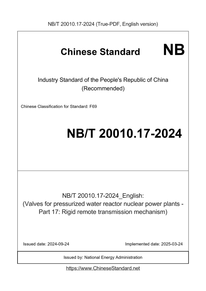 Basic dataStandard ID: NB/T 20010.17-2024 (NB/T20010.17-2024)Description (Translated English): (Valves for pressurized water reactor nuclear power plants - Part 17: Rigid remote transmission mechanism) Sector / Industry: Energy Industry Standard (Recommended) Classification of Chinese Standard: F69 Classification of International Standard: 27.120.20 Date of Issue: 2024-09-24 Date of Implementation: 2025-03-24 Issuing agency(ies): National Energy Administration Tips & Frequently Asked Questions:Question 1: How long will the true-PDF of NB/T 20010.17-2024_English be delivered?Answer: Upon your order, we will start to translate NB/T 20010.17-2024_English as soon as possible, and keep you informed of the progress. The lead time is typically 1 ~ 3 working days. The lengthier the document the longer the lead time.Question 2: Can I share the purchased PDF of NB/T 20010.17-2024_English with my colleagues?Answer: Yes. The purchased PDF of NB/T 20010.17-2024_English will be deemed to be sold to your employer/organization who actually pays for it, including your colleagues and your employer's intranet.Question 3: Does the price include tax/VAT?Answer: Yes. Our tax invoice, downloaded/delivered in 9 seconds, includes all tax/VAT and complies with 100+ countries' tax regulations (tax exempted in 100+ countries) -- See Avoidance of Double Taxation Agreements (DTAs): List of DTAs signed between Singapore and 100+ countriesQuestion 4: Do you accept my currency other than USD?Answer: Yes. If you need your currency to be printed on the invoice, please write an email to Sales@ChineseStandard.net. In 2 working-hours, we will create a special link for you to pay in any currencies. Otherwise, follow the normal steps: Add to Cart -- Checkout -- Select your currency to pay. |