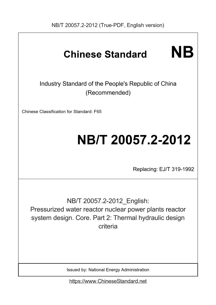 Delivery: <= 3 days. True-PDF full-copy in English will be manually translated and delivered via email. NB/T 20057.2-2012: Pressurized water reactor nuclear power plants reactor system design. Core. Part 2: Thermal hydraulic design criteria Status: Valid