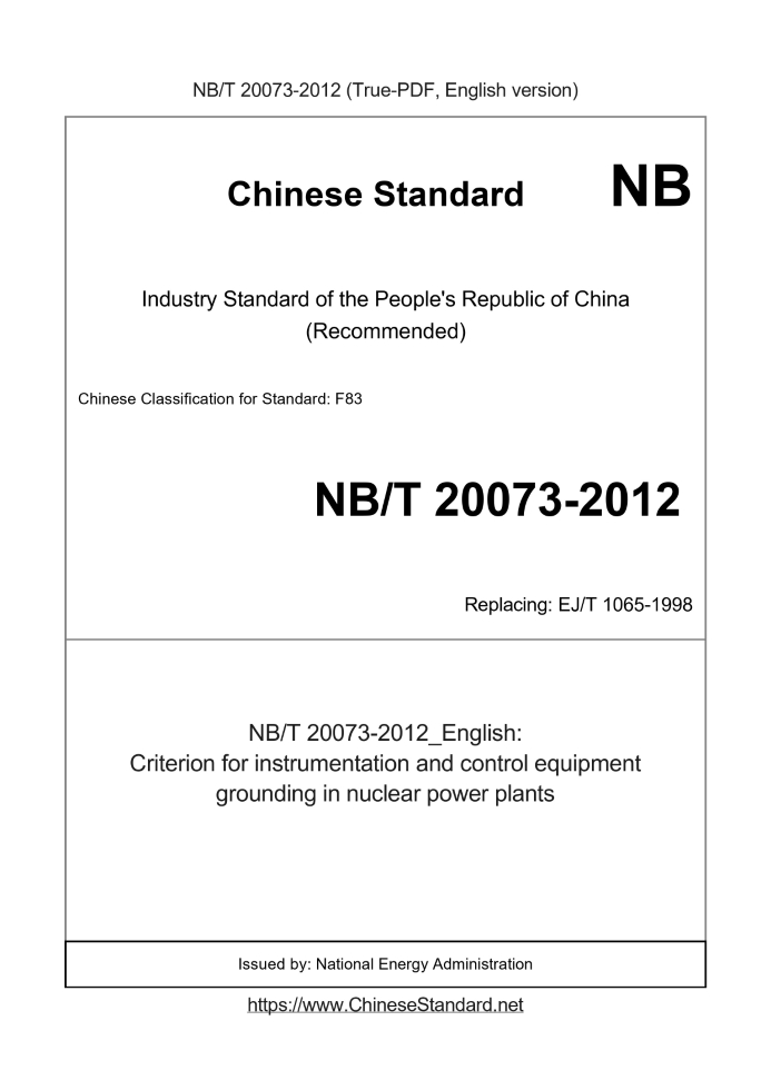 US$989.00 · In stock · Download in 9 secondsNB/T 20073-2012: Criterion for instrumentation and control equipment grounding in nuclear power plants