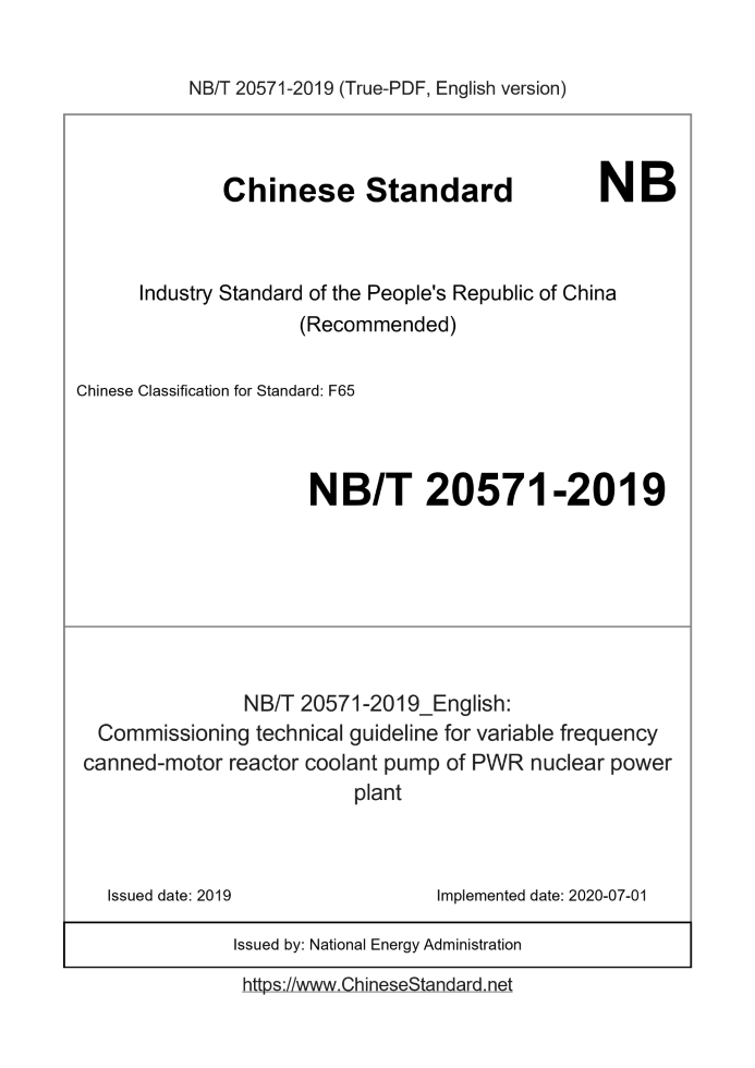 | NB/T 20571-2019 English PDFUS$249.00 ยท In stock Delivery: <= 3 days. True-PDF full-copy in English will be manually translated and delivered via email. NB/T 20571-2019: Commissioning technical guideline for variable frequency canned-motor reactor coolant pump of PWR nuclear power plant Status: Valid
