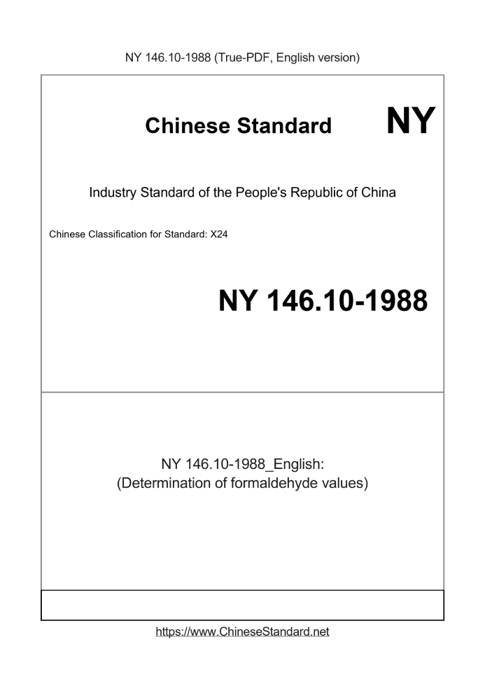 Delivery: <= 2 days. True-PDF full-copy in English will be manually translated and delivered via email. NY 146.10-1988: (Determination of formaldehyde values) Status: Obsolete