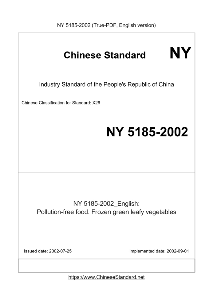 | NY 5185-2002 English PDFUS$279.00 ยท In stock Delivery: <= 3 days. True-PDF full-copy in English will be manually translated and delivered via email. NY 5185-2002: Pollution-free food. Frozen green leafy vegetables Status: Obsolete