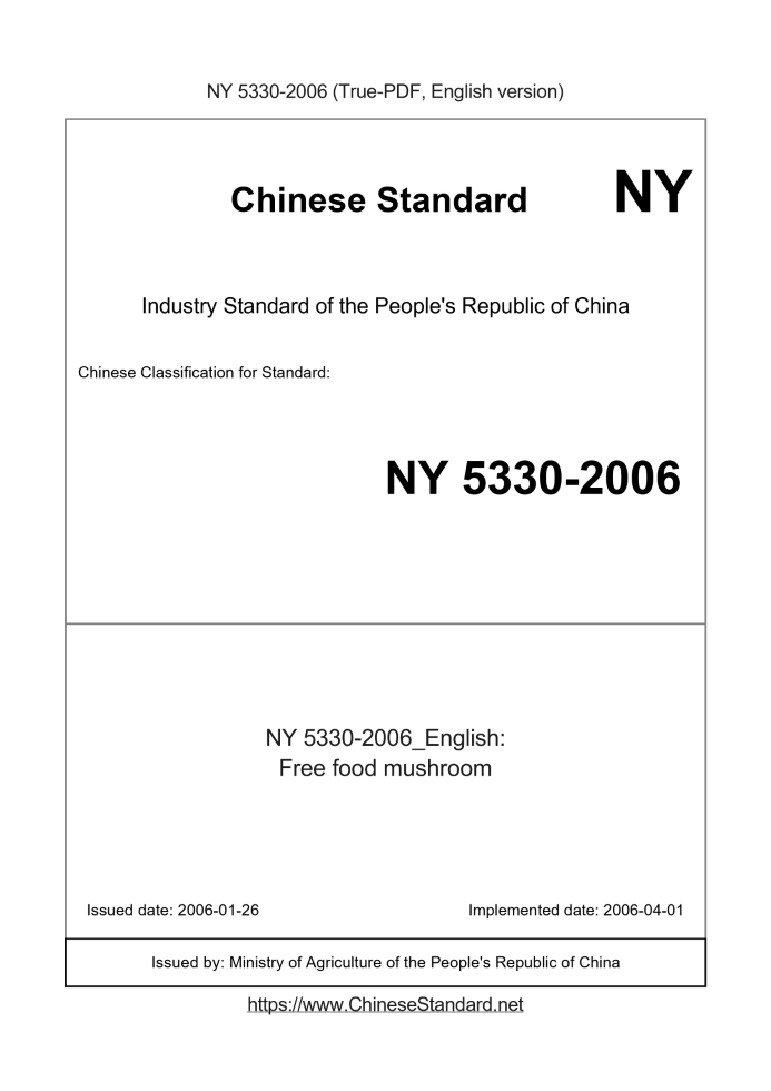 Basic dataStandard ID: NY 5330-2006 (NY5330-2006)Description (Translated English): Free food mushroom Sector / Industry: Agriculture Industry Standard Date of Issue: 2006-01-26 Date of Implementation: 2006-04-01 Regulation (derived from): Department of Agriculture Bulletin No. 604 2006 Issuing agency(ies): Ministry of Agriculture of the People's Republic of China Tips & Frequently Asked Questions:Question 1: How long will the true-PDF of NY 5330-2006_English be delivered?Answer: Upon your order, we will start to translate NY 5330-2006_English as soon as possible, and keep you informed of the progress. The lead time is typically in 9 seconds (download/delivered in 9 seconds). The lengthier the document the longer the lead time.Question 2: Can I share the purchased PDF of NY 5330-2006_English with my colleagues?Answer: Yes. The purchased PDF of NY 5330-2006_English will be deemed to be sold to your employer/organization who actually pays for it, including your colleagues and your employer's intranet.Question 3: Does the price include tax/VAT?Answer: Yes. Our tax invoice, downloaded/delivered in 9 seconds, includes all tax/VAT and complies with 100+ countries' tax regulations (tax exempted in 100+ countries) -- See Avoidance of Double Taxation Agreements (DTAs): List of DTAs signed between Singapore and 100+ countriesQuestion 4: Do you accept my currency other than USD?Answer: Yes. If you need your currency to be printed on the invoice, please write an email to Sales@ChineseStandard.net. In 2 working-hours, we will create a special link for you to pay in any currencies. Otherwise, follow the normal steps: Add to Cart -- Checkout -- Select your currency to pay. |