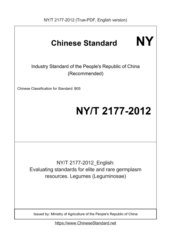 Delivery: <= 3 days. True-PDF full-copy in English will be manually translated and delivered via email. NY/T 2177-2012: Evaluating standards for elite and rare germplasm resources. Legumes (Leguminosae) Status: Valid