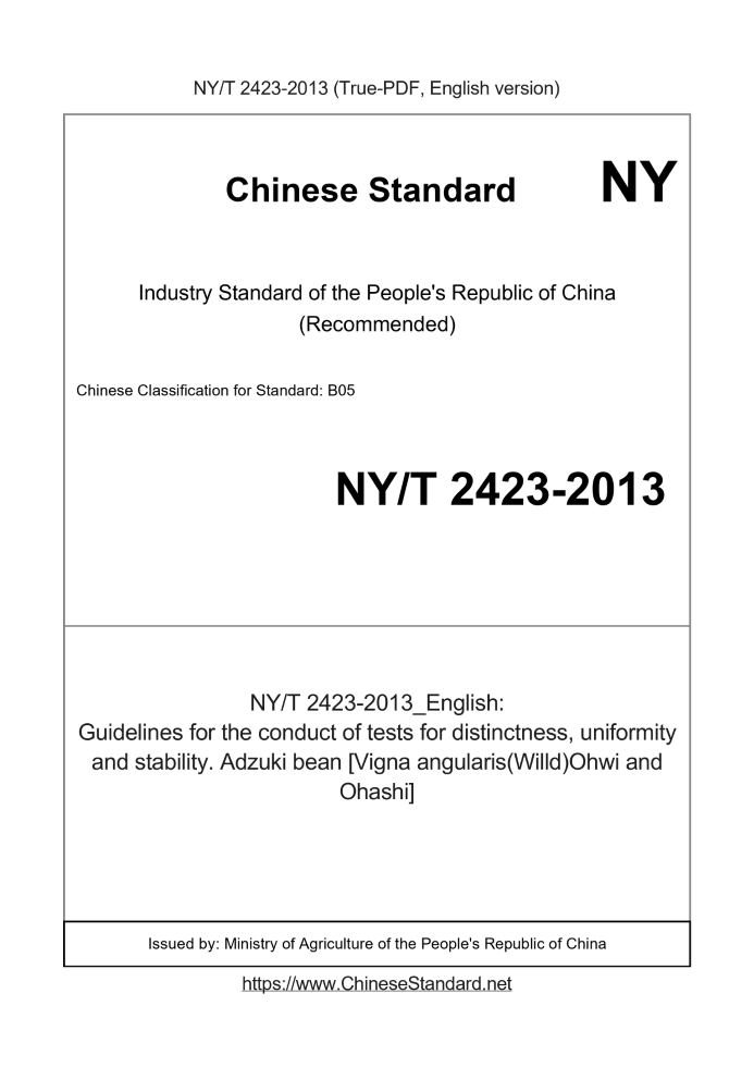 Delivery: <= 4 days. True-PDF full-copy in English will be manually translated and delivered via email. NY/T 2423-2013: Guidelines for the conduct of tests for distinctness, uniformity and stability. Adzuki bean [Vigna angularis(Willd)Ohwi and Ohashi] Status: Valid