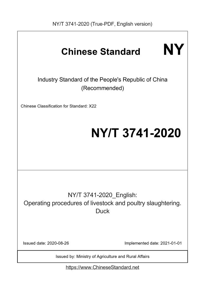 US$149.00 · In stock · Download in 9 secondsNY/T 3741-2020: Operating procedures of livestock and poultry slaughtering. Duck