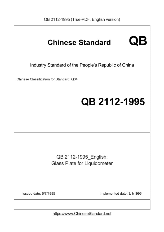 Delivery: <= 3 days. True-PDF full-copy in English will be manually translated and delivered via email. QB 2112-1995: Glass Plate for Liquidometer Status: Obsolete