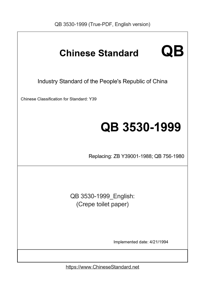 Delivery: <= 2 days. True-PDF full-copy in English will be manually translated and delivered via email. QB 3530-1999: (Crepe toilet paper) Status: Obsolete
