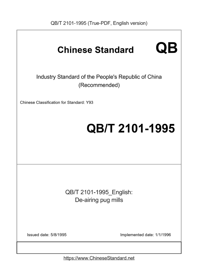 Delivery: <= 3 days. True-PDF full-copy in English will be manually translated and delivered via email. QB/T 2101-1995: De-airing pug mills