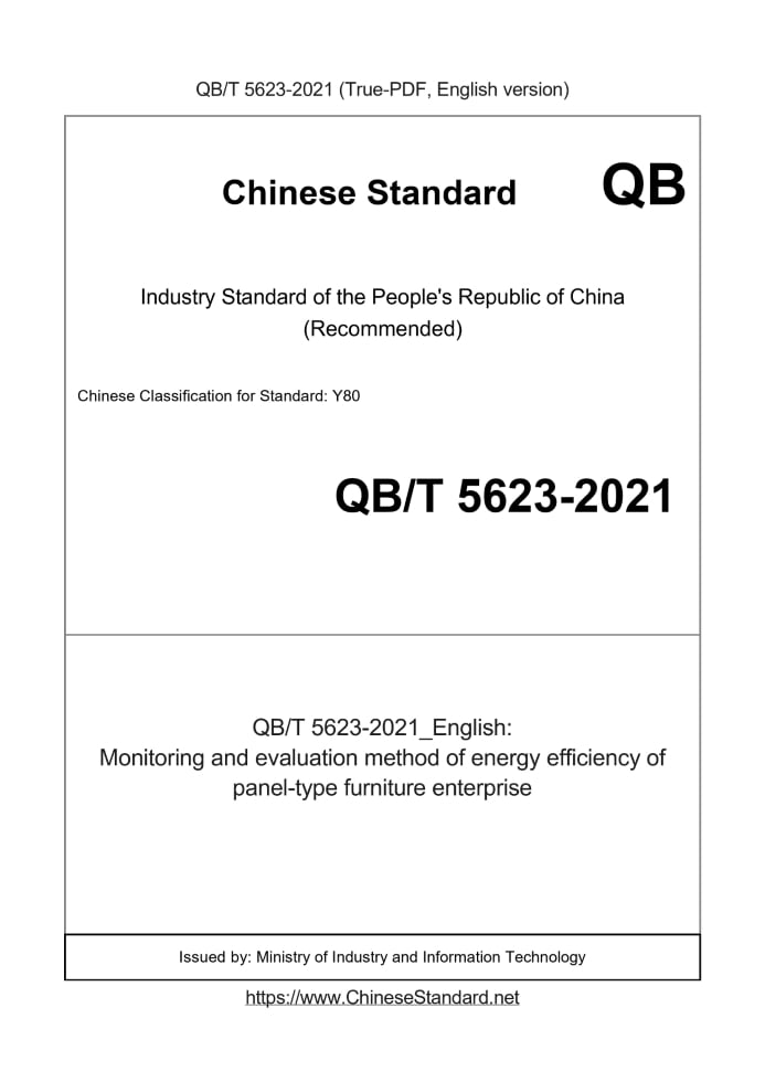 Delivery: <= 3 days. True-PDF full-copy in English will be manually translated and delivered via email. QB/T 5623-2021: Monitoring and evaluation method of energy efficiency of panel-type furniture enterprise Status: Valid