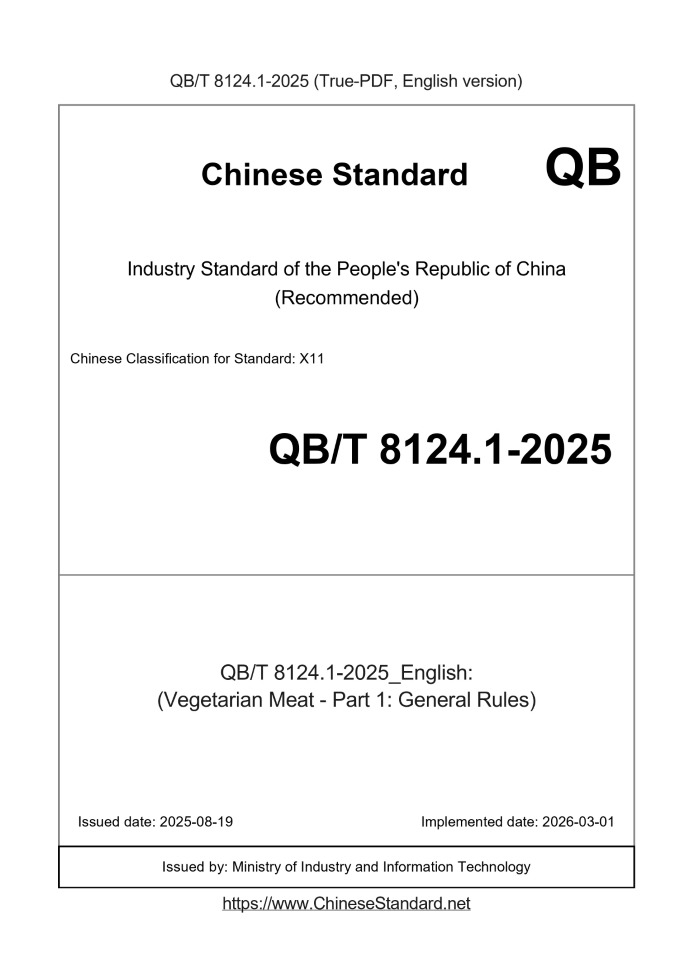 | QB/T 8124.1-2025 | English | RFQ | ASK | 3 days [Need to translate] | (Vegetarian Meat - Part 1: General Rules) |