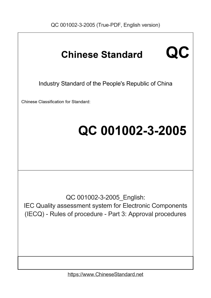 Basic dataStandard ID: QC 001002-3-2005 (QC001002-3-2005)Description (Translated English): IEC Quality assessment system for Electronic Components (IECQ) - Rules of procedure - Part 3: Approval procedures Sector / Industry: Automobile & Vehicle Industry Standard Tips & Frequently Asked Questions:Question 1: How long will the true-PDF of QC 001002-3-2005_English be delivered?Answer: Upon your order, we will start to translate QC 001002-3-2005_English as soon as possible, and keep you informed of the progress. The lead time is typically 1 ~ 3 working days. The lengthier the document the longer the lead time.Question 2: Can I share the purchased PDF of QC 001002-3-2005_English with my colleagues?Answer: Yes. The purchased PDF of QC 001002-3-2005_English will be deemed to be sold to your employer/organization who actually pays for it, including your colleagues and your employer's intranet.Question 3: Does the price include tax/VAT?Answer: Yes. Our tax invoice, downloaded/delivered in 9 seconds, includes all tax/VAT and complies with 100+ countries' tax regulations (tax exempted in 100+ countries) -- See Avoidance of Double Taxation Agreements (DTAs): List of DTAs signed between Singapore and 100+ countriesQuestion 4: Do you accept my currency other than USD?Answer: Yes. If you need your currency to be printed on the invoice, please write an email to Sales@ChineseStandard.net. In 2 working-hours, we will create a special link for you to pay in any currencies. Otherwise, follow the normal steps: Add to Cart -- Checkout -- Select your currency to pay. |