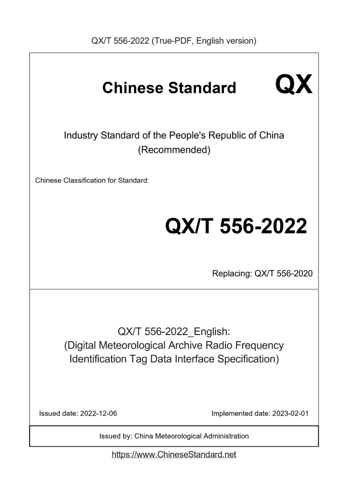 Basic dataStandard ID: QX/T 556-2022 (QX/T556-2022)Description (Translated English): (Digital Meteorological Archive Radio Frequency Identification Tag Data Interface Specification) Sector / Industry: Chinese Industry Standard (Recommended) Date of Issue: 2022-12-06 Date of Implementation: 2023-02-01 Issuing agency(ies): China Meteorological Administration Tips & Frequently Asked Questions:Question 1: How long will the true-PDF of QXT556-2022_English be delivered?Answer: Upon your order, we will start to translate QXT556-2022_English as soon as possible, and keep you informed of the progress. The lead time is typically 1 ~ 3 working days. The lengthier the document the longer the lead time.Question 2: Can I share the purchased PDF of QXT556-2022_English with my colleagues?Answer: Yes. The purchased PDF of QXT556-2022_English will be deemed to be sold to your employer/organization who actually pays for it, including your colleagues and your employer's intranet.Question 3: Does the price include tax/VAT?Answer: Yes. Our tax invoice, downloaded/delivered in 9 seconds, includes all tax/VAT and complies with 100+ countries' tax regulations (tax exempted in 100+ countries) -- See Avoidance of Double Taxation Agreements (DTAs): List of DTAs signed between Singapore and 100+ countriesQuestion 4: Do you accept my currency other than USD?Answer: Yes. If you need your currency to be printed on the invoice, please write an email to Sales@ChineseStandard.net. In 2 working-hours, we will create a special link for you to pay in any currencies. Otherwise, follow the normal steps: Add to Cart -- Checkout -- Select your currency to pay.Question 5: Should I purchase the latest version QXT556-2022?Answer: Yes. Unless special scenarios such as technical constraints or academic study, you should always prioritize to purchase the latest version QXT556-2022 even if the enforcement date is in future. Complying with the latest version means that, by default, it also complies with all the earlier versions, technically. |