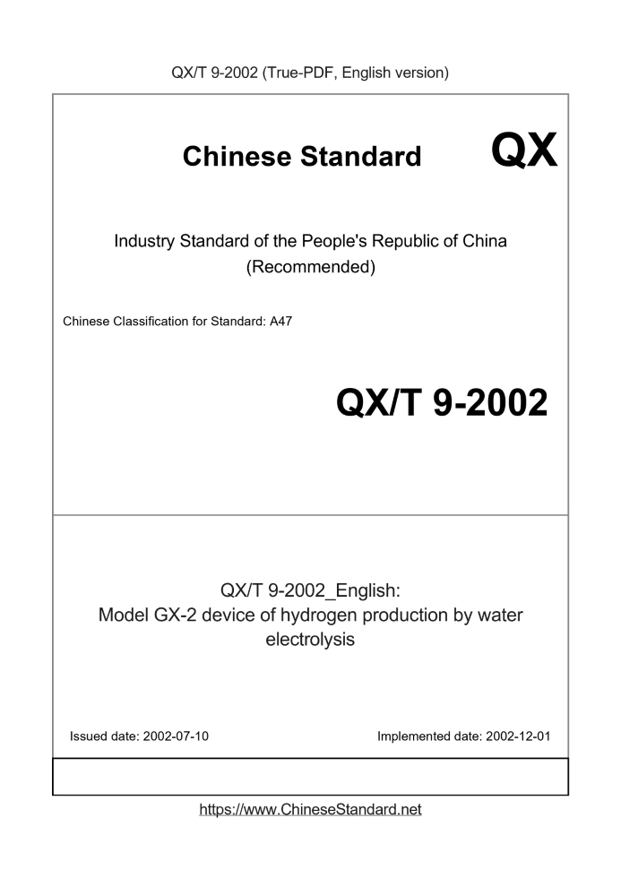 Delivery: <= 3 days. True-PDF full-copy in English will be manually translated and delivered via email. QXT9-2002: Model GX-2 device of hydrogen production by water electrolysis Status: Obsolete
