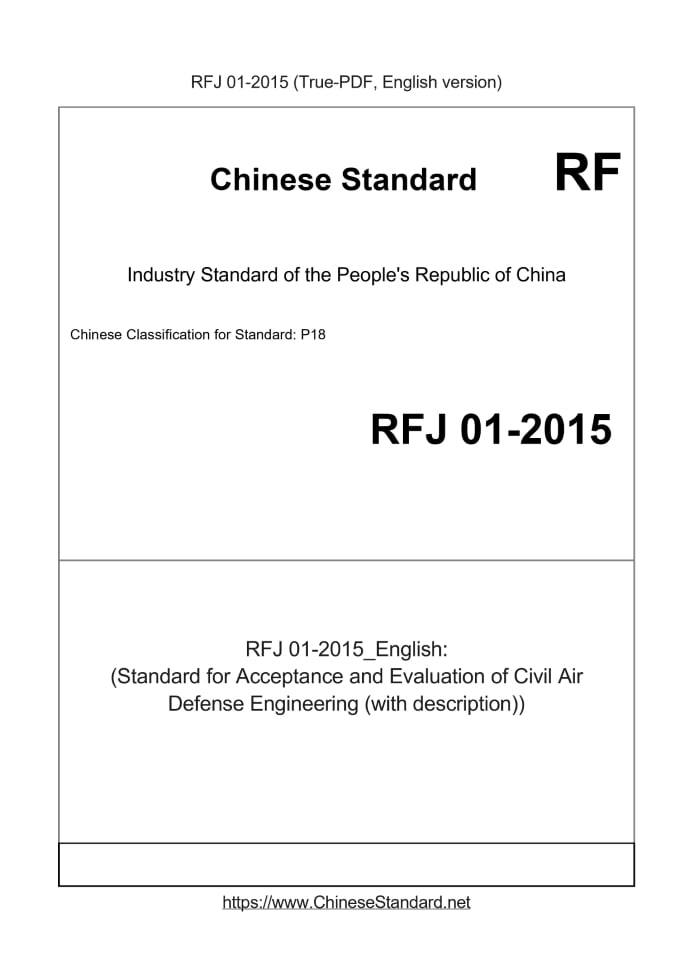 Basic dataStandard ID: RFJ 01-2015 (RFJ01-2015)Description (Translated English): (Standard for Acceptance and Evaluation of Civil Air Defense Engineering (with description)) Sector / Industry: Chinese Industry Standard Date of Issue: 2015-01-13 Date of Implementation: 2015-02-01 Older Standard (superseded by this standard): RFJ 01-2002 Regulation (derived from): Engineering construction standard record J2103-2015 Tips & Frequently Asked Questions:Question 1: How long will the true-PDF of RFJ01-2015_English be delivered?Answer: Upon your order, we will start to translate RFJ01-2015_English as soon as possible, and keep you informed of the progress. The lead time is typically 1 ~ 3 working days. The lengthier the document the longer the lead time.Question 2: Can I share the purchased PDF of RFJ01-2015_English with my colleagues?Answer: Yes. The purchased PDF of RFJ01-2015_English will be deemed to be sold to your employer/organization who actually pays for it, including your colleagues and your employer's intranet.Question 3: Does the price include tax/VAT?Answer: Yes. Our tax invoice, downloaded/delivered in 9 seconds, includes all tax/VAT and complies with 100+ countries' tax regulations (tax exempted in 100+ countries) -- See Avoidance of Double Taxation Agreements (DTAs): List of DTAs signed between Singapore and 100+ countriesQuestion 4: Do you accept my currency other than USD?Answer: Yes. If you need your currency to be printed on the invoice, please write an email to Sales@ChineseStandard.net. In 2 working-hours, we will create a special link for you to pay in any currencies. Otherwise, follow the normal steps: Add to Cart -- Checkout -- Select your currency to pay. |