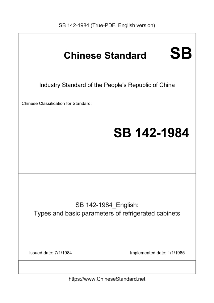Delivery: <= 2 days. True-PDF full-copy in English will be manually translated and delivered via email. SB 142-1984: Types and basic parameters of refrigerated cabinets Status: Obsolete