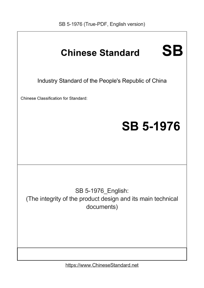 Basic dataStandard ID: SB 5-1976 (SB5-1976)Description (Translated English): (The integrity of the product design and its main technical documents) Sector / Industry: Domestic Trade Industry Standard Tips & Frequently Asked Questions:Question 1: How long will the true-PDF of SB 5-1976_English be delivered?Answer: Upon your order, we will start to translate SB 5-1976_English as soon as possible, and keep you informed of the progress. The lead time is typically 1 ~ 3 working days. The lengthier the document the longer the lead time.Question 2: Can I share the purchased PDF of SB 5-1976_English with my colleagues?Answer: Yes. The purchased PDF of SB 5-1976_English will be deemed to be sold to your employer/organization who actually pays for it, including your colleagues and your employer's intranet.Question 3: Does the price include tax/VAT?Answer: Yes. Our tax invoice, downloaded/delivered in 9 seconds, includes all tax/VAT and complies with 100+ countries' tax regulations (tax exempted in 100+ countries) -- See Avoidance of Double Taxation Agreements (DTAs): List of DTAs signed between Singapore and 100+ countriesQuestion 4: Do you accept my currency other than USD?Answer: Yes. If you need your currency to be printed on the invoice, please write an email to Sales@ChineseStandard.net. In 2 working-hours, we will create a special link for you to pay in any currencies. Otherwise, follow the normal steps: Add to Cart -- Checkout -- Select your currency to pay. |