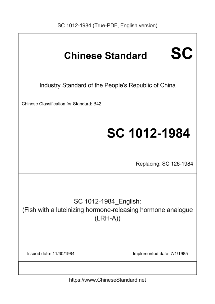 Delivery: <= 2 days. True-PDF full-copy in English will be manually translated and delivered via email. SC 1012-1984: (Fish with a luteinizing hormone-releasing hormone analogue (LRH-A))