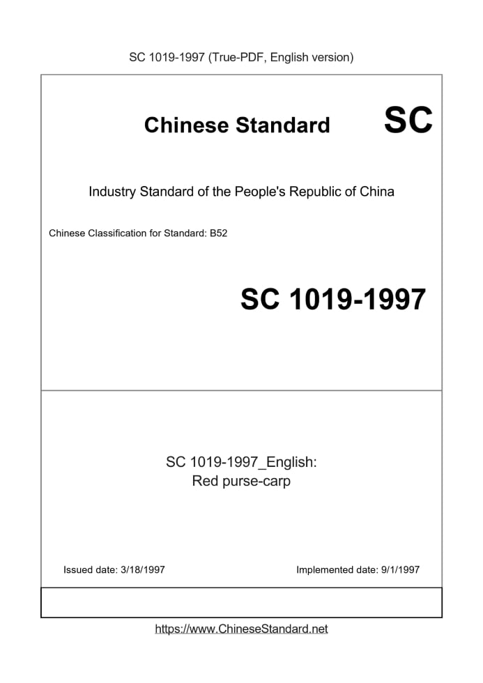 Delivery: <= 3 days. True-PDF full-copy in English will be manually translated and delivered via email. SC 1019-1997: Red purse-carp Status: Obsolete