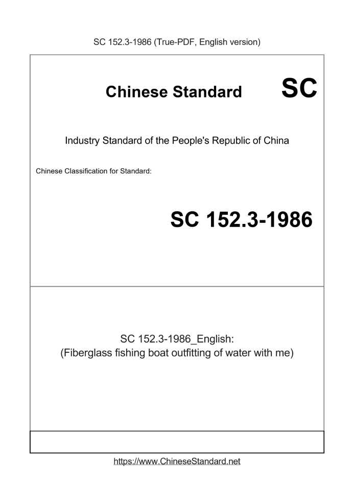 Basic dataStandard ID: SC 152.3-1986 (SC152.3-1986)Description (Translated English): (Fiberglass fishing boat outfitting of water with me) Sector / Industry: Aquatic Product Industry Standard Tips & Frequently Asked Questions:Question 1: How long will the true-PDF of SC 152.3-1986_English be delivered?Answer: Upon your order, we will start to translate SC 152.3-1986_English as soon as possible, and keep you informed of the progress. The lead time is typically 1 ~ 3 working days. The lengthier the document the longer the lead time.Question 2: Can I share the purchased PDF of SC 152.3-1986_English with my colleagues?Answer: Yes. The purchased PDF of SC 152.3-1986_English will be deemed to be sold to your employer/organization who actually pays for it, including your colleagues and your employer's intranet.Question 3: Does the price include tax/VAT?Answer: Yes. Our tax invoice, downloaded/delivered in 9 seconds, includes all tax/VAT and complies with 100+ countries' tax regulations (tax exempted in 100+ countries) -- See Avoidance of Double Taxation Agreements (DTAs): List of DTAs signed between Singapore and 100+ countriesQuestion 4: Do you accept my currency other than USD?Answer: Yes. If you need your currency to be printed on the invoice, please write an email to Sales@ChineseStandard.net. In 2 working-hours, we will create a special link for you to pay in any currencies. Otherwise, follow the normal steps: Add to Cart -- Checkout -- Select your currency to pay. |