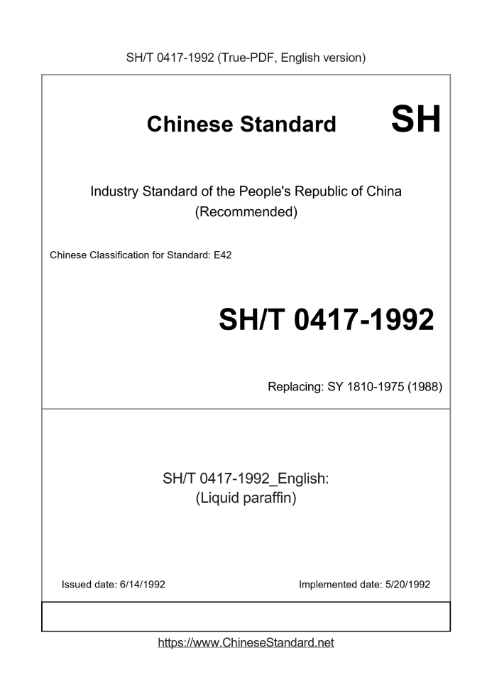 Delivery: <= 2 days. True-PDF full-copy in English will be manually translated and delivered via email. SH/T 0417-1992: (Liquid paraffin) Status: Obsolete
