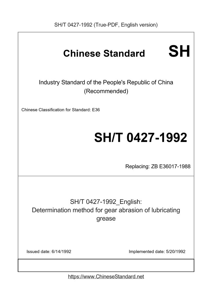 US$419.00 · In stock · Download in 9 secondsSH/T 0427-1992: Determination method for gear abrasion of lubricating grease