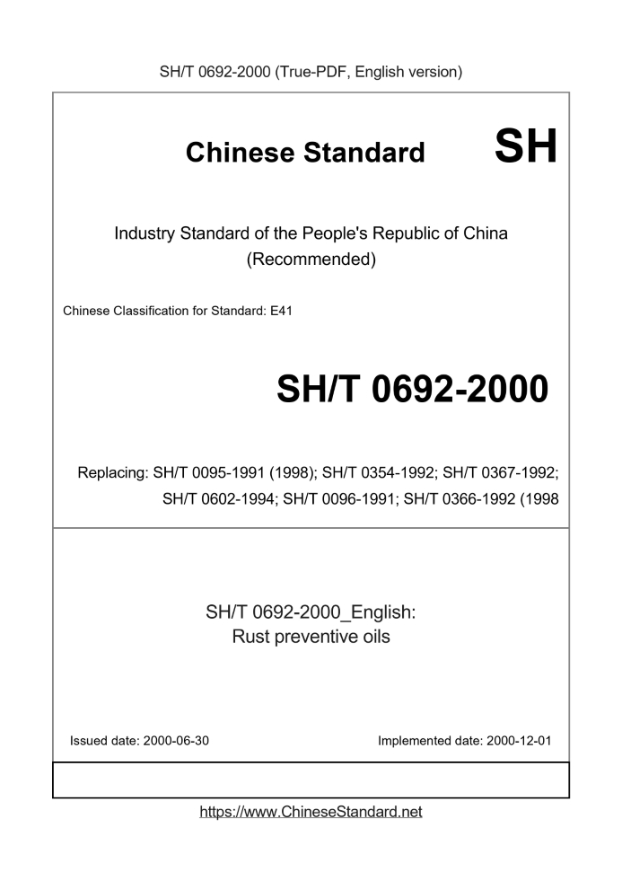 Delivery: <= 3 days. True-PDF full-copy in English will be manually translated and delivered via email. SH/T 0692-2000: Rust preventive oils