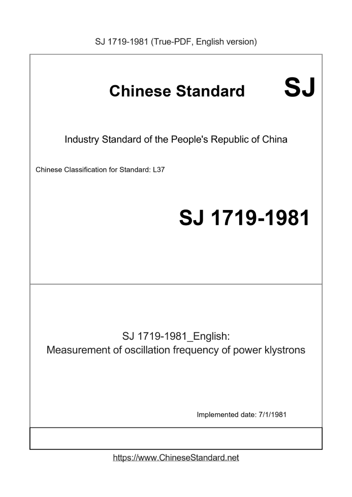 | SJ 1719-1981 | English | 199 | Add to Cart | 2 days [Need to translate] | Measurement of oscillation frequency of power klystrons |