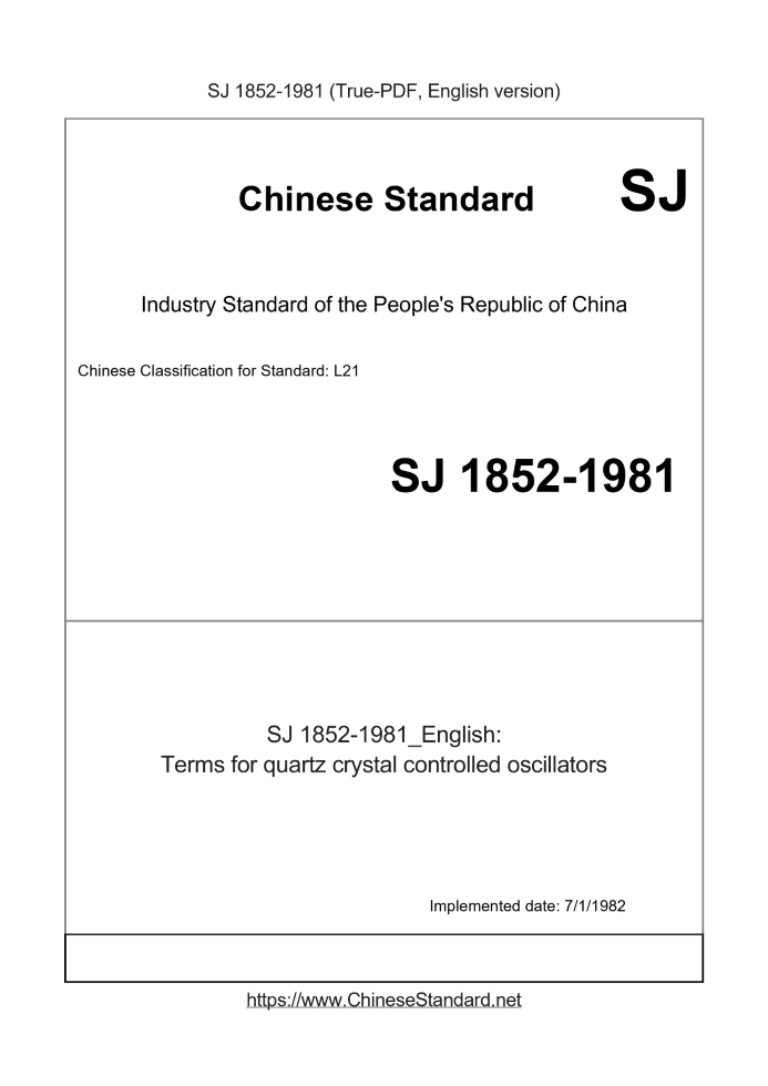 | SJ 1852-1981 English PDFUS$399.00 ยท In stock Delivery: <= 3 days. True-PDF full-copy in English will be manually translated and delivered via email. SJ 1852-1981: Terms for quartz crystal controlled oscillators Status: Obsolete