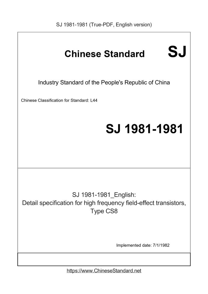 | SJ 1981-1981 English PDFUS$199.00 ยท In stock Delivery: <= 2 days. True-PDF full-copy in English will be manually translated and delivered via email. SJ 1981-1981: Detail specification for high frequency field-effect transistors, Type CS8 Status: Obsolete