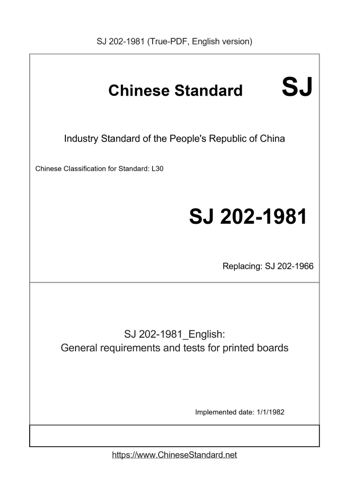 Basic dataStandard ID: SJ 202-1981 (SJ202-1981)Description (Translated English): General requirements and tests for printed boards Sector / Industry: Electronics Industry Standard Classification of Chinese Standard: L30 Word Count Estimation: 15,168 Date of Implementation: 1/1/1982 Older Standard (superseded by this standard): SJ 202-1966 Regulation (derived from): Industry-Science (2010) No. 77 Tips & Frequently Asked Questions:Question 1: How long will the true-PDF of SJ 202-1981_English be delivered?Answer: Upon your order, we will start to translate SJ 202-1981_English as soon as possible, and keep you informed of the progress. The lead time is typically 2 ~ 4 working days. The lengthier the document the longer the lead time.Question 2: Can I share the purchased PDF of SJ 202-1981_English with my colleagues?Answer: Yes. The purchased PDF of SJ 202-1981_English will be deemed to be sold to your employer/organization who actually pays for it, including your colleagues and your employer's intranet.Question 3: Does the price include tax/VAT?Answer: Yes. Our tax invoice, downloaded/delivered in 9 seconds, includes all tax/VAT and complies with 100+ countries' tax regulations (tax exempted in 100+ countries) -- See Avoidance of Double Taxation Agreements (DTAs): List of DTAs signed between Singapore and 100+ countriesQuestion 4: Do you accept my currency other than USD?Answer: Yes. If you need your currency to be printed on the invoice, please write an email to Sales@ChineseStandard.net. In 2 working-hours, we will create a special link for you to pay in any currencies. Otherwise, follow the normal steps: Add to Cart -- Checkout -- Select your currency to pay.Question 5: Should I purchase the latest version SJ 202-1981?Answer: Yes. Unless special scenarios such as technical constraints or academic study, you should always prioritize to purchase the latest version SJ 202-1981 even if the enforcement date is in future. Complying with the latest version means that, by default, it also complies with all the earlier versions, technically. |