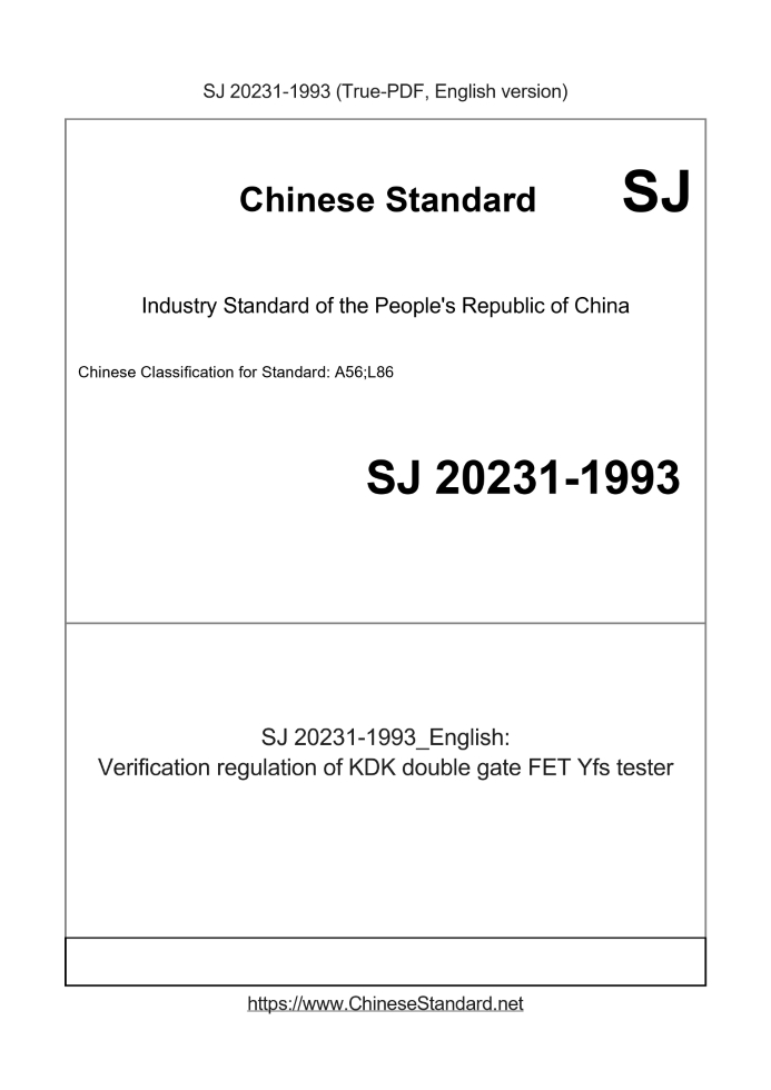 | SJ 20231-1993 English PDFUS$359.00 ยท In stock Delivery: <= 3 days. True-PDF full-copy in English will be manually translated and delivered via email. SJ 20231-1993: Verification regulation of KDK double gate FET Yfs tester Status: Obsolete