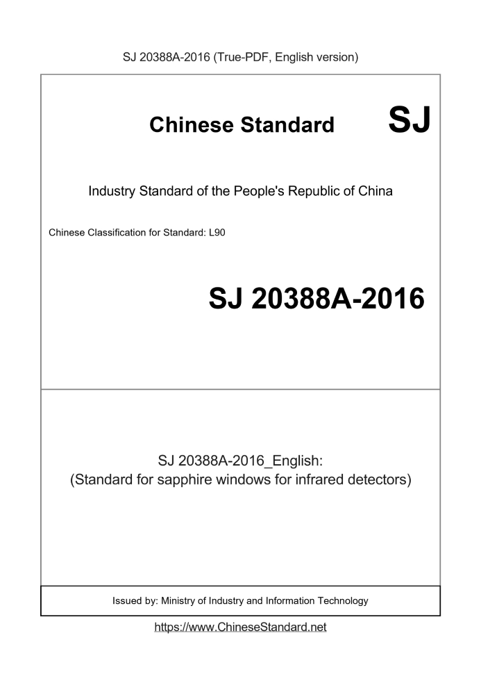 Delivery: <= 3 days. True-PDF full-copy in English will be manually translated and delivered via email. SJ20388A-2016: (Standard for sapphire windows for infrared detectors) Status: Valid
