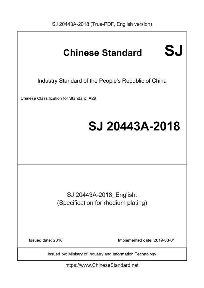 Delivery: <= 3 days. True-PDF full-copy in English will be manually translated and delivered via email. SJ20443A-2018: (Specification for rhodium plating)