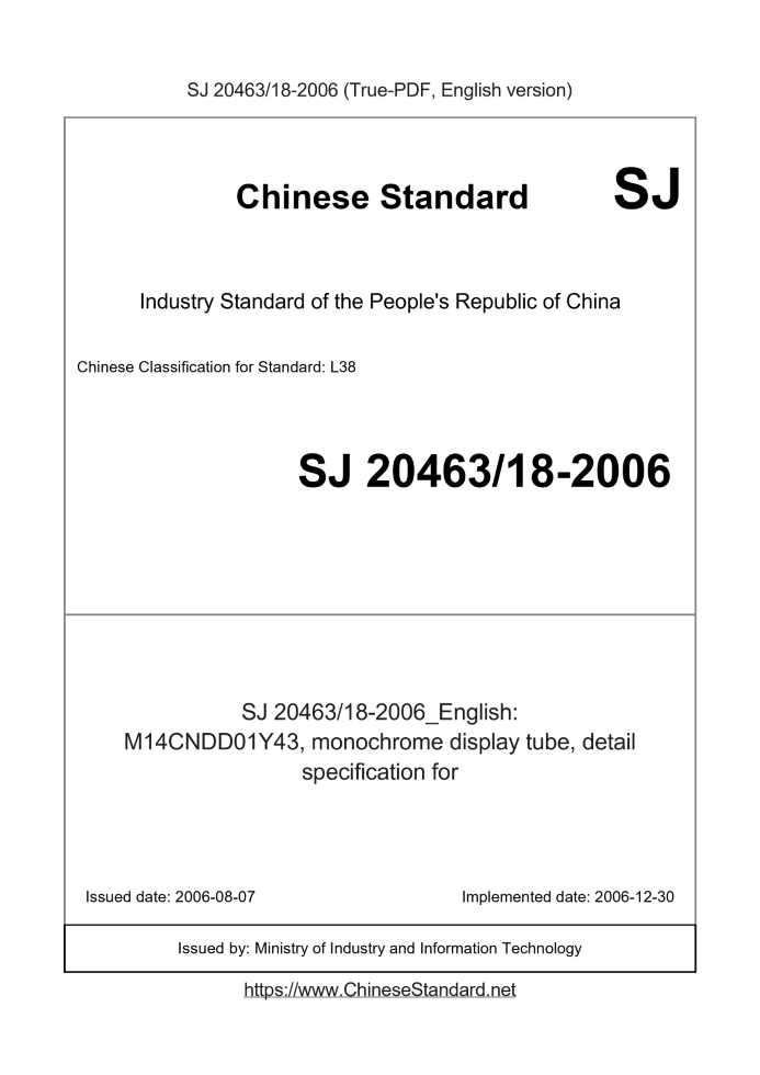 Delivery: <= 3 days. True-PDF full-copy in English will be manually translated and delivered via email. SJ 2046318-2006: M14CNDD01Y43, monochrome display tube, detail specification for Status: Valid