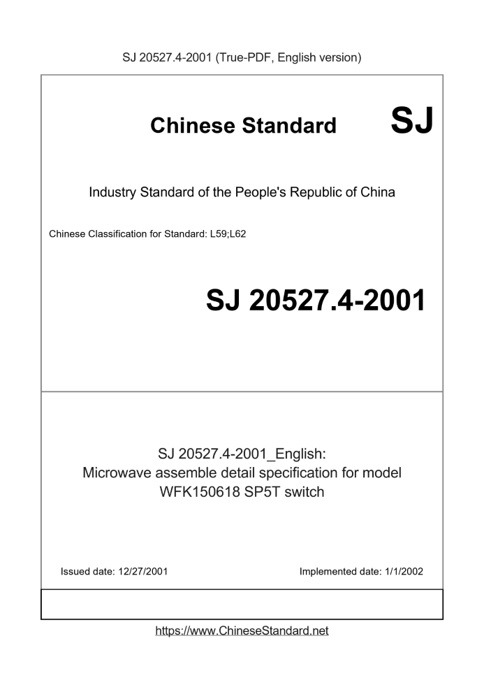 Basic dataStandard ID: SJ 20527.4-2001 (SJ20527.4-2001)Description (Translated English): Microwave assemble detail specification for model WFK150618 SP5T switch Sector / Industry: Electronics Industry Standard Classification of Chinese Standard: L59;L62 Date of Issue: 12/27/2001 Date of Implementation: 1/1/2002 Summary: This standard specifies the microwave components WFK150618 single-pole five-throw switch of the detailed requirements. This standard applies to the development, production and procurement of switches. Tips & Frequently Asked Questions:Question 1: How long will the true-PDF of SJ 20527.4-2001_English be delivered?Answer: Upon your order, we will start to translate SJ 20527.4-2001_English as soon as possible, and keep you informed of the progress. The lead time is typically 1 ~ 3 working days. The lengthier the document the longer the lead time.Question 2: Can I share the purchased PDF of SJ 20527.4-2001_English with my colleagues?Answer: Yes. The purchased PDF of SJ 20527.4-2001_English will be deemed to be sold to your employer/organization who actually pays for it, including your colleagues and your employer's intranet.Question 3: Does the price include tax/VAT?Answer: Yes. Our tax invoice, downloaded/delivered in 9 seconds, includes all tax/VAT and complies with 100+ countries' tax regulations (tax exempted in 100+ countries) -- See Avoidance of Double Taxation Agreements (DTAs): List of DTAs signed between Singapore and 100+ countriesQuestion 4: Do you accept my currency other than USD?Answer: Yes. If you need your currency to be printed on the invoice, please write an email to Sales@ChineseStandard.net. In 2 working-hours, we will create a special link for you to pay in any currencies. Otherwise, follow the normal steps: Add to Cart -- Checkout -- Select your currency to pay. |