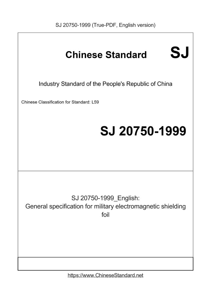 Delivery: <= 3 days. True-PDF full-copy in English will be manually translated and delivered via email. SJ 20750-1999: General specification for military electromagnetic shielding foil