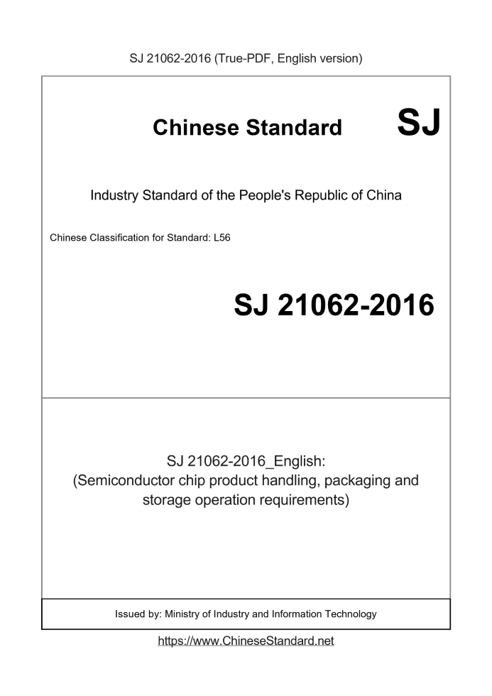 Delivery: <= 4 days. True-PDF full-copy in English will be manually translated and delivered via email. SJ 21062-2016: (Semiconductor chip product handling, packaging and storage operation requirements) Status: Valid