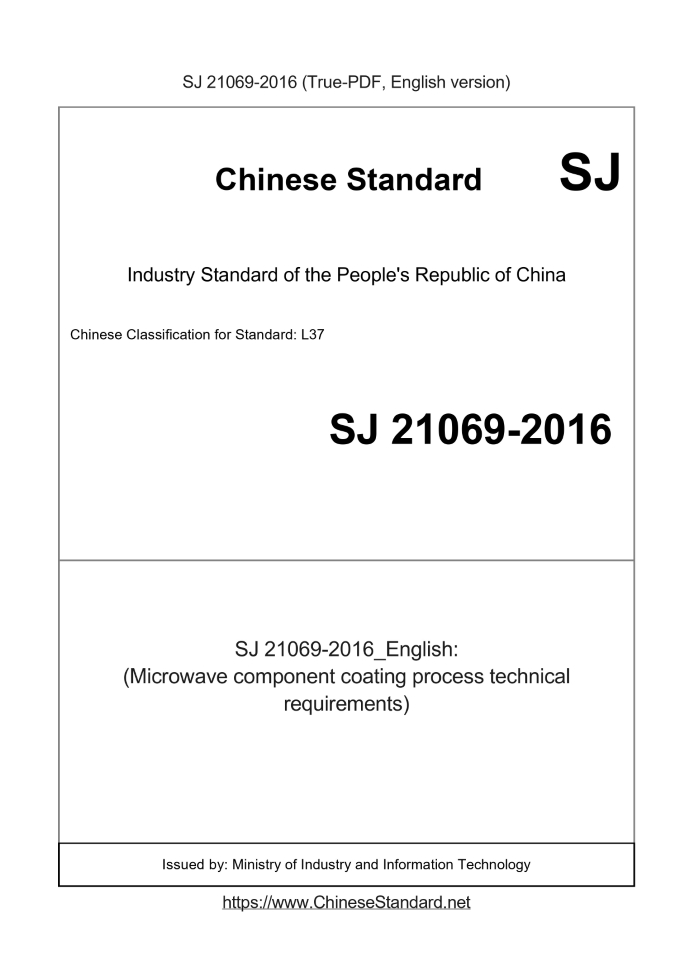 Delivery: <= 4 days. True-PDF full-copy in English will be manually translated and delivered via email. SJ 21069-2016: (Microwave component coating process technical requirements) Status: Valid