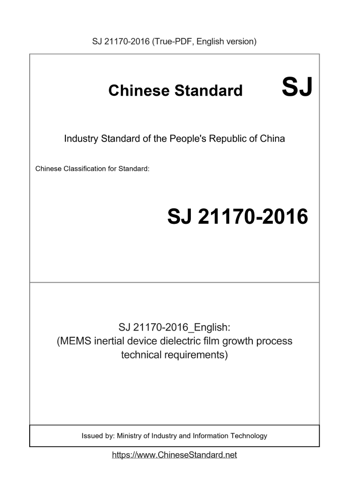 Delivery: <= 4 days. True-PDF full-copy in English will be manually translated and delivered via email. SJ 21170-2016: (MEMS inertial device dielectric film growth process technical requirements) Status: Valid