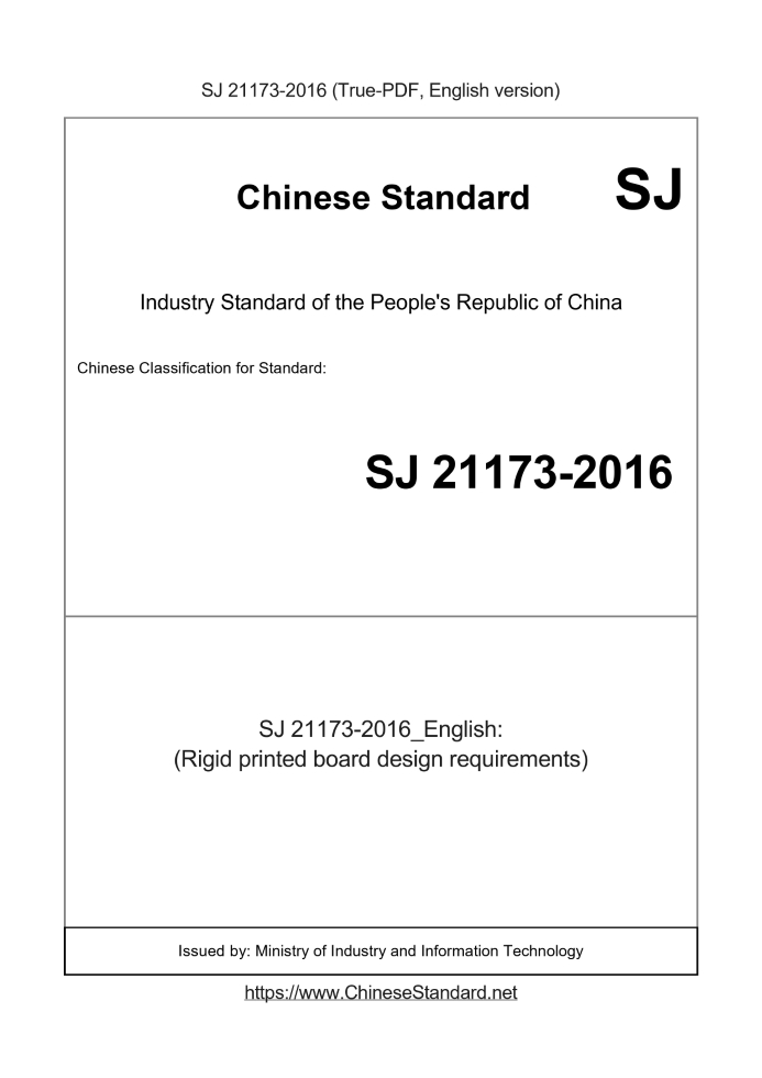 Delivery: <= 5 days. True-PDF full-copy in English will be manually translated and delivered via email. SJ 21173-2016: (Rigid printed board design requirements) Status: Valid
