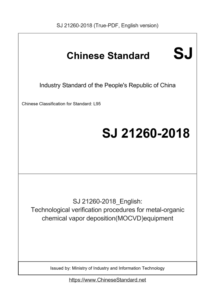 Delivery: <= 4 days. True-PDF full-copy in English will be manually translated and delivered via email. SJ 21260-2018: Technological verification procedures for metal-organic chemical vapor deposition(MOCVD)equipment Status: Valid