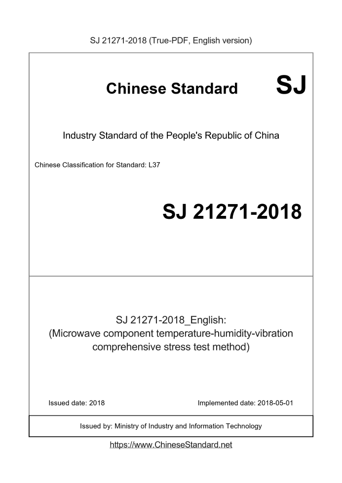 Delivery: <= 3 days. True-PDF full-copy in English will be manually translated and delivered via email. SJ 21271-2018: (Microwave component temperature-humidity-vibration comprehensive stress test method)